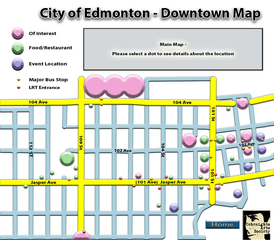 Grant MacEwan College Denny's Restaurant Save-On Foods Grocery Store Swiss Chalet The Marble Slab Creamery The Mongolie Grill Restuarant Bohemia Internet Cafe Gabbana Fusion Restaurant Halo / Red Star Pub Macs Convenience Store Naked Internet Cafe Edmonton City Hall Allen's Delicatessen and Convenience Store City Centre West (Mall) City Centre West Foodcourt City Centre East Foodcourt City Centre East (Mall) Churchill Square The Winspear Centre The Citadel Theatre The Stanley A Milner Library The Westin Hotel / Hospitality Suite Restaurant Area SunTerra Market Manulife Place (Mall) Tim Horton's The Wok Box New City / Likwid Lounge The Hotel Macdonald Subway Sandwiches The Provincial Legislature The Masonic Hall Back to the 2008 Event Site Back to the Main Site